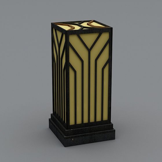 The Art Deco Lantern 3D model showcases a black metal frame with warm beige glass panels, capturing vintage charm in a geometric style. Built with 500 polygons and high-quality textures, it suits interior decor, game development, and artistic projects.