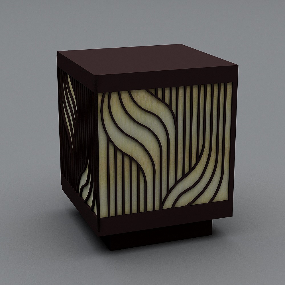 The Ripple Light Shadow Cabinet 3D model showcases soft wood textures in deep brown and light yellow hues. With around 500 polygons, it offers a minimalist yet luxurious style, suitable for interior design, gaming, and VR projects.