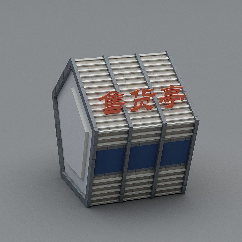 This Unique Low-Poly Kiosk model features a minimalist gray frame, white walls, blue windows, and red Chinese characters. With around 500 polygons and high-quality textures, it suits architectural, game, and animation projects.