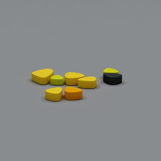This set of seven vibrant low-poly geometric 3D models features colorful yellow, orange, green, and black shapes with detailed textures. Optimized polygons ensure smooth performance for interior design, gaming, and VR projects.