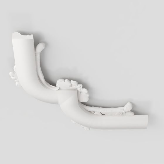 The Baroque Corner Scroll 3D model showcases elegant curves with a smooth white marble-like finish. Featuring 500 polygons, it's ideal for interior design, blending classic and contemporary elements seamlessly.