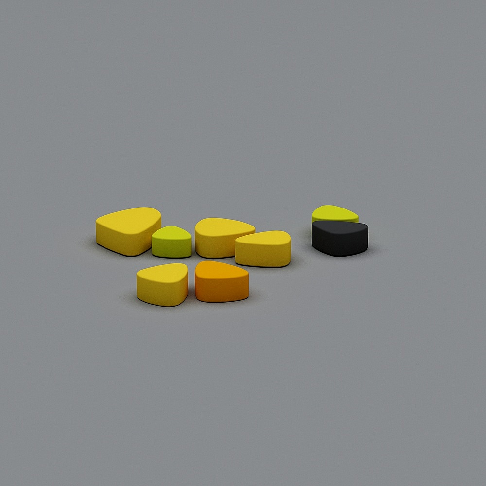 This set of seven vibrant low-poly geometric 3D models features colorful yellow, orange, green, and black shapes with detailed textures. Optimized polygons ensure smooth performance for interior design, gaming, and VR projects.