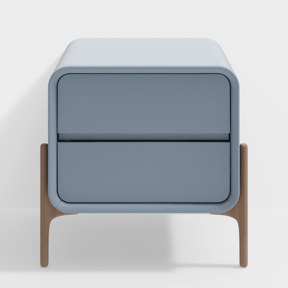 The Elegant Scandinavian Style Nightstand 3D model features soft blue, low-poly design with polished leather texture and sturdy wooden legs. Built with 1,200 optimized polygons, it suits interior design, gaming, and VR environments.