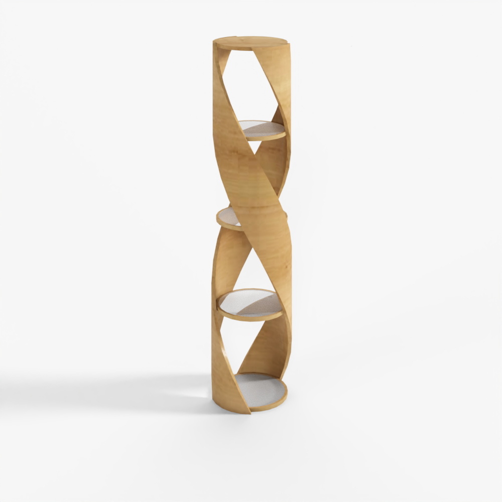 The Urban Elegance bookshelf showcases natural wood textures with a low-poly design. Featuring four symmetric columns and five shelves, this 1,200-polygon model suits modern interiors, offices, and game environments.