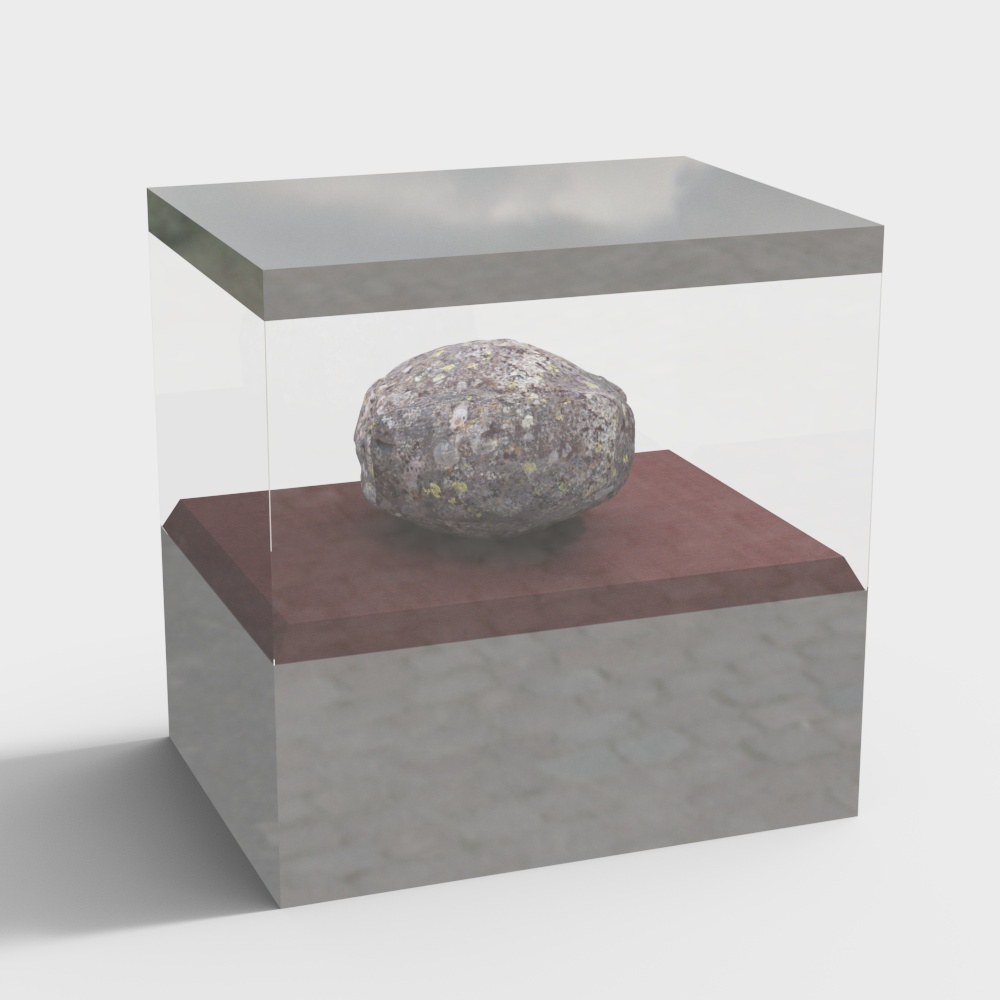 The Stylish Minimalist Display Cabinet 3D model features a white frame with a gray marble base and transparent glass top. Built with about 500 polygons for optimized performance, it suits interior displays, gaming, VR, and architectural projects.