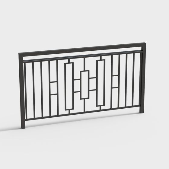The Minimalist Metal Railing 3D model features a matte black finish with vertical posts in a sleek low-poly style. Built with 120 polygons for smooth rendering, ideal for architectural, interior, and urban game environments.