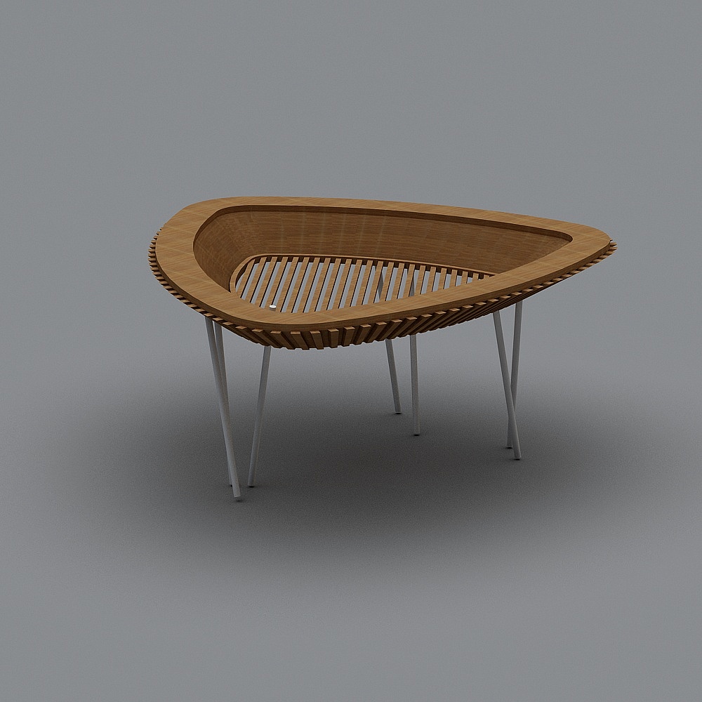 The Organic Curved Wooden Chair 3D model features smooth light brown wood with white metal legs. Built with optimized low-poly geometry, it suits interior decor, gaming, and VR projects.