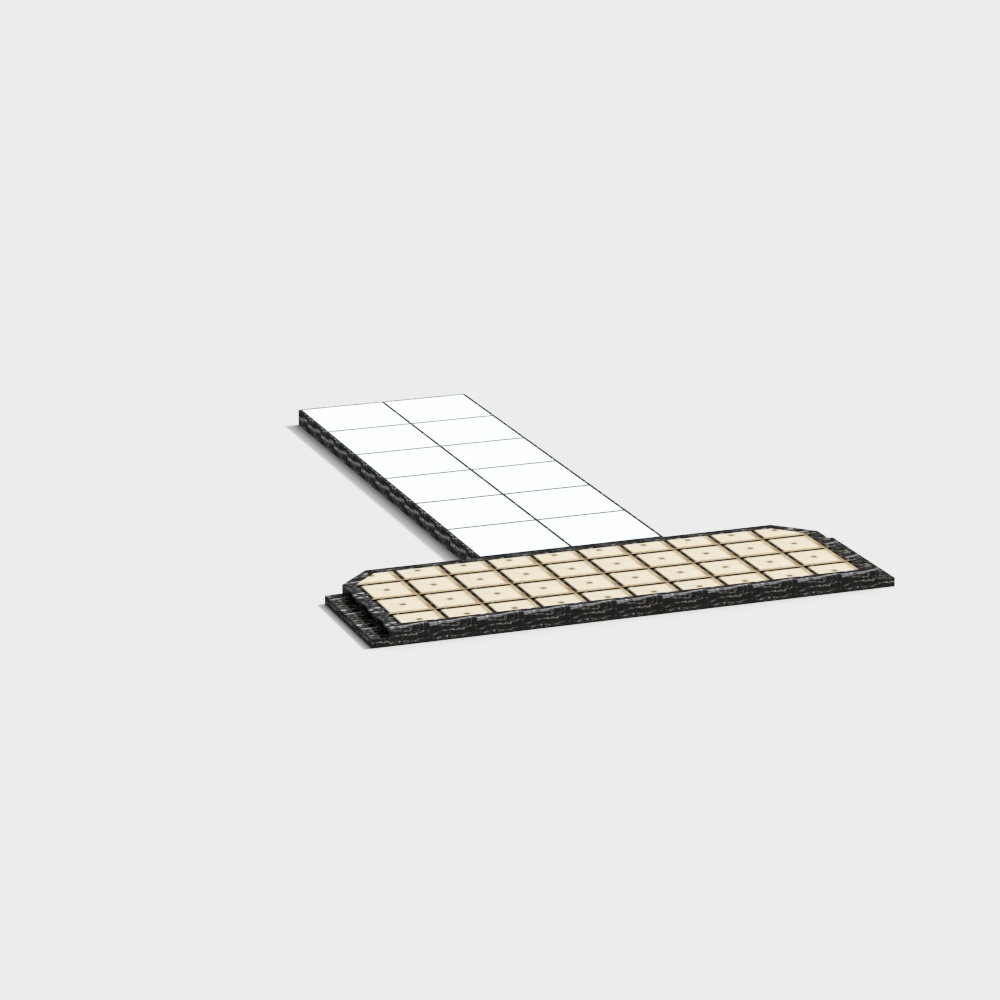 The Urban Rooftop 3D Model showcases white reflective surfaces edged in black. Built with 1,000 polygons for optimized rendering, it suits game development, VR/AR, and interior design projects in modern urban scenes.