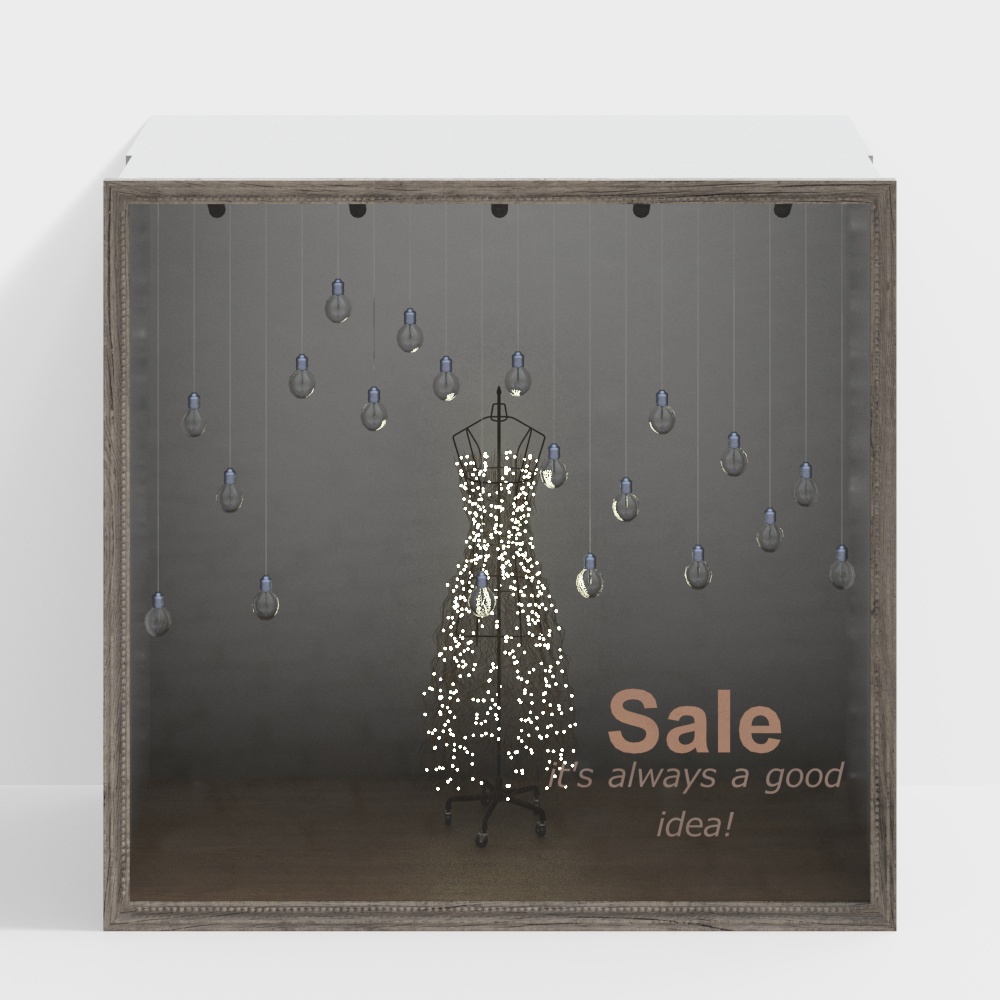 The Light Bulb Dress Form Display 3D model showcases a rustic wooden frame with integrated twinkling lights. Featuring over 500 polygons, it combines vintage charm with efficient geometry, suitable for fashion displays, game environments, and VR scenes.