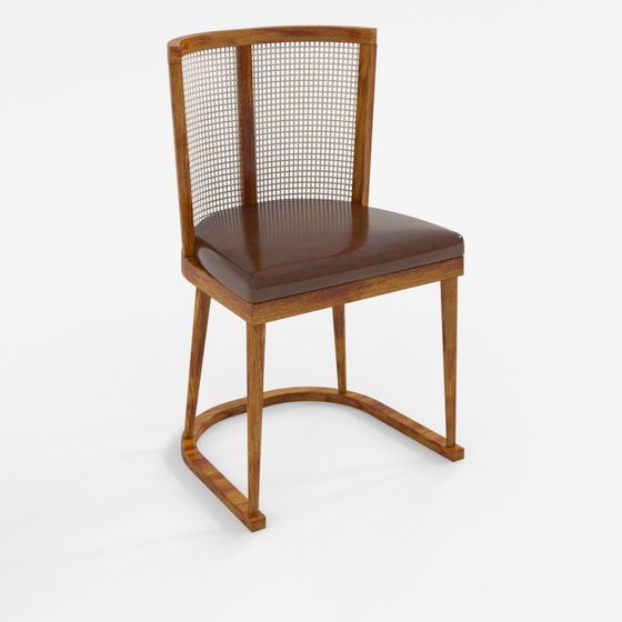 The Elegant Minimalist Chair 3D model features a low-poly wooden frame with a brown leather cushion. Built with 1,200 polygons, it offers detailed natural textures ideal for interior design, architectural visualization, and gaming environments.