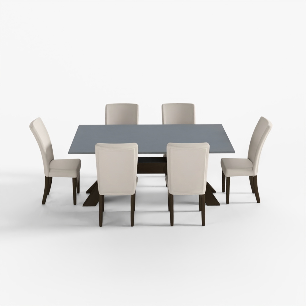 The Streamlined Dining Table 3D model presents a rich brown wood texture with a dynamic leg structure. Featuring 1,200 optimized polygons, it balances detail and performance for interior design, gaming, and VR projects.