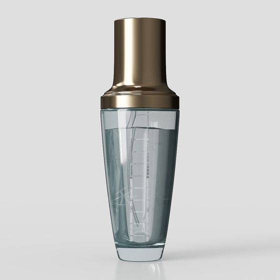 This Elegant Cocktail Shaker 3D model features a glossy gold cap and transparent glass body. Built with 1,000 optimized polygons, it suits bar scenes, VR environments, and game development projects.