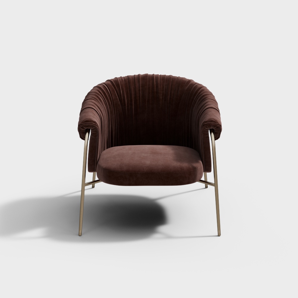 The Velvet Armchair 3D model showcases deep brown velvet upholstery paired with a sleek golden metal frame. Featuring around 500 low-poly polygons, it ensures smooth performance for interior design, game development, and animation scenes.