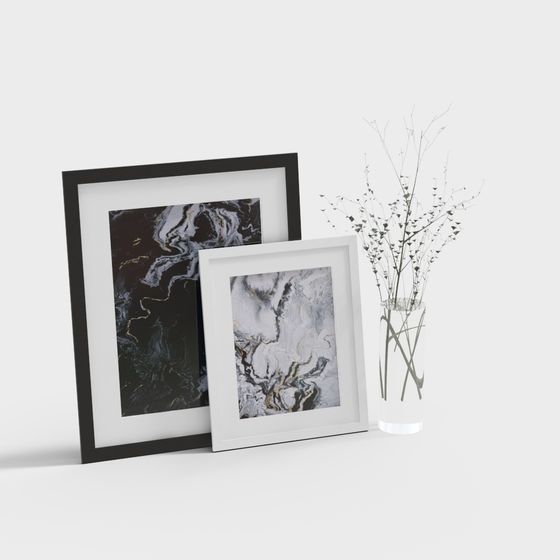 The Abstract Art Frame 3D model showcases low-poly elegance with marble textures in black, gray, and gold. Featuring 3,500 polygons, it ensures smooth performance, ideal for interiors, game scenes, and architectural visualization.
