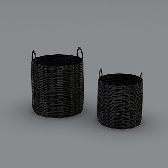 The Black Woven Baskets 3D model presents two intricately textured black baskets in a low-poly style. Featuring natural woven materials and 1,200 polygons, these baskets are ideal for interior design, gaming, and VR environments.
