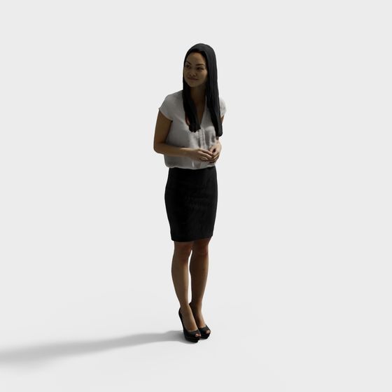 Designed for gaming and VR, this chic female character model features a white top and black pencil skirt. With low-poly geometry optimized for smooth rendering, it suits interior design, gaming, and AR applications.