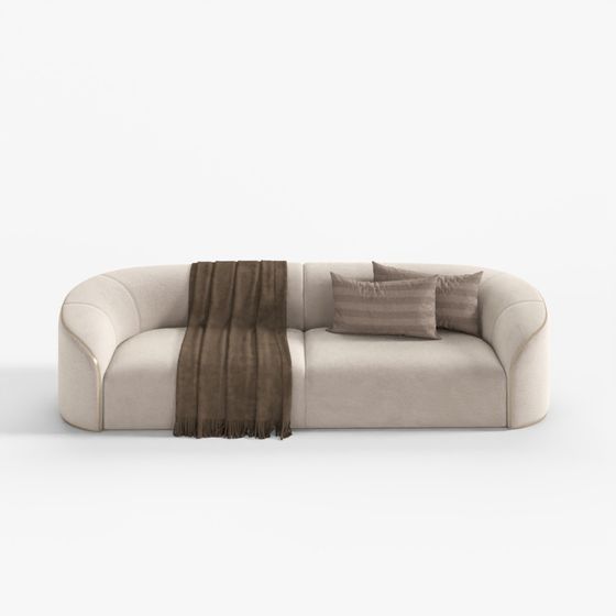 The Curve Comfort 3D model sofa presents an off-white soft fabric upholstery with dynamic cushions. Built with low polygon geometry, it balances realism and artistic style, ideal for interior design, VR scenes, and game environments.