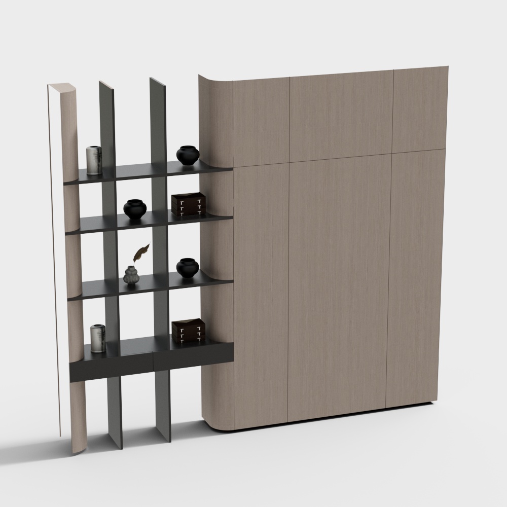 The Elegant Minimalist Bookshelf 3D model showcases fine wood textures with soft gray hues and white shelves. Composed of 500 polygons, it suits modern and Scandinavian interiors, ideal for interior design, VR, and game environments.