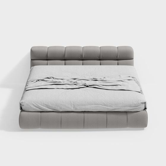 The Urban Comfort Bed Frame 3D model showcases a modern minimalist design with a soft gray padded headboard. Featuring around 1,000 polygons, it balances detail and efficiency, ideal for interior design, VR, gaming, and animation projects.