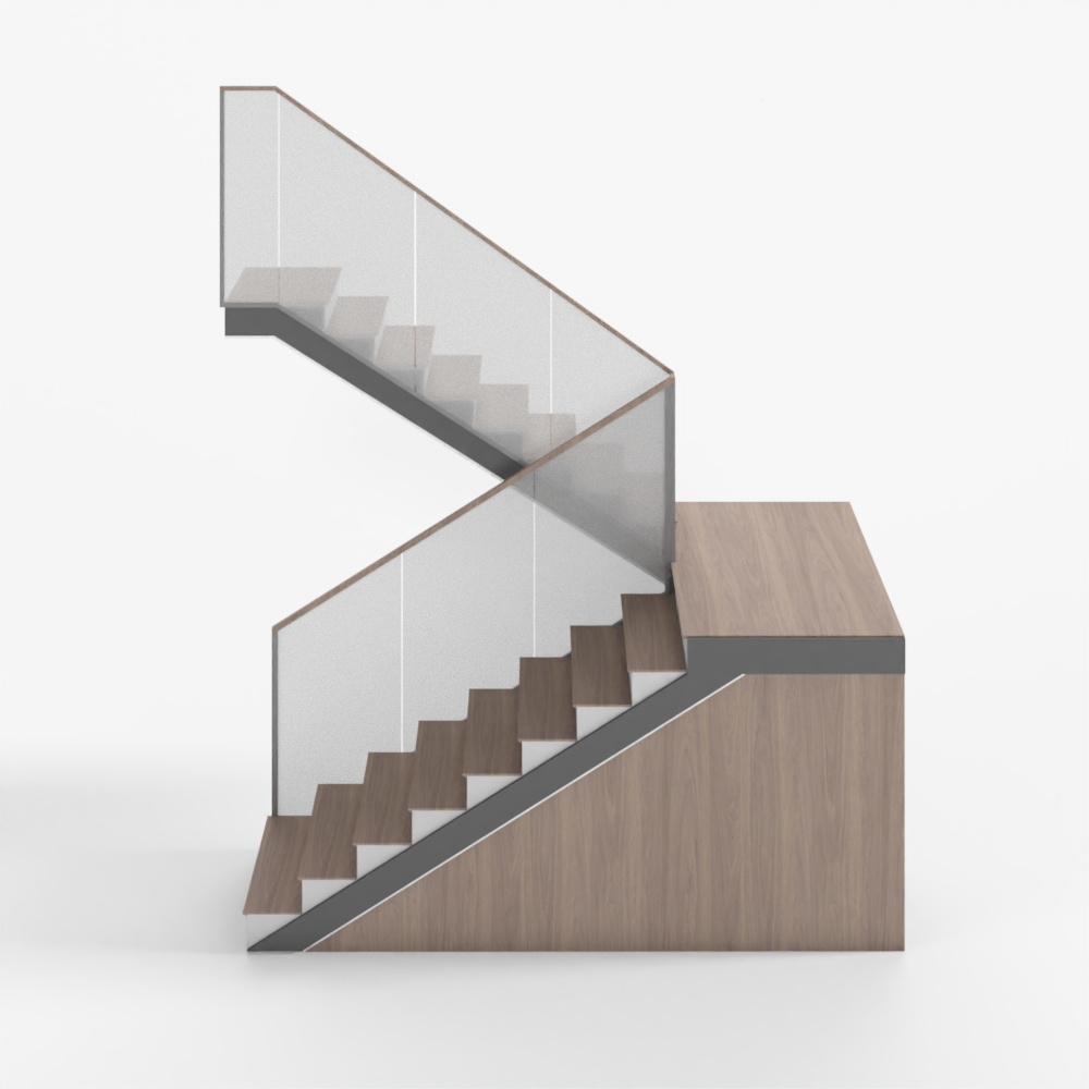 The Elegant Glass Staircase 3D model features transparent glass steps paired with smooth concrete supports. With 1,200 optimized polygons, it balances detail and performance for interior design, gaming, and animation projects.