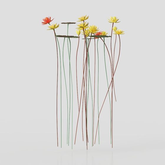 The Vibrant Aquatic Plants 3D model showcases yellow and orange flowers with lush green stems. Built with 1,000 polygons, it’s ideal for interior design, game environments, and VR scenes.