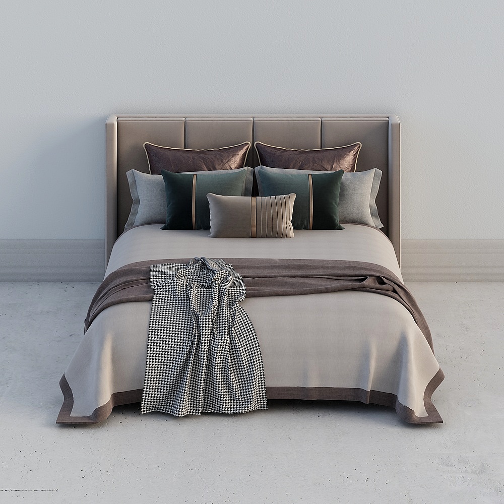 The Urban Retreat Bed 3D model showcases a minimalist style with soft gray tones, leather headboard, and detailed linens. With 500 polygons optimized for smooth rendering, it's ideal for interior design, gaming, and VR bedroom scenes.