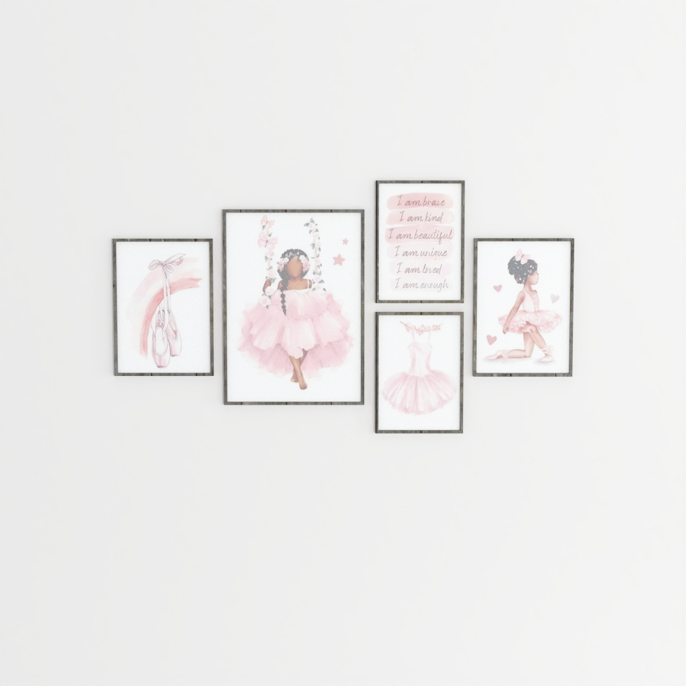 The Gallery Wall 3D model showcases seven wood-framed glass panels with varied artwork. Featuring 1,200 polygons, it balances detail and performance for interior design, VR, and gaming environments.