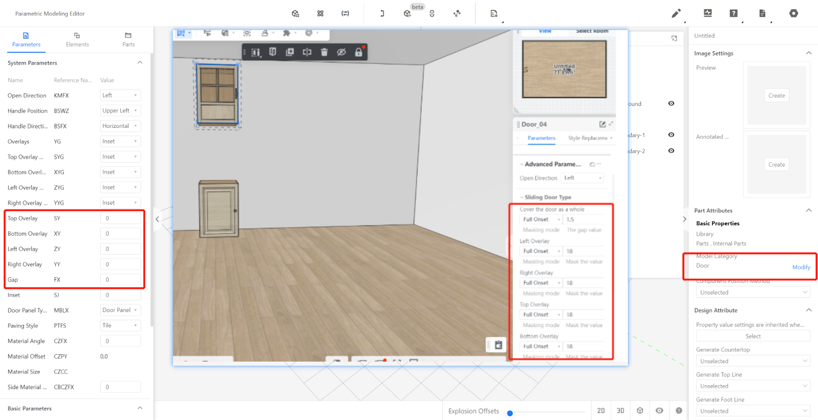 Note: Only "concealed doors" have adjustable options for 4 Overlay Door Crack Configuration, as shown in the figure below: