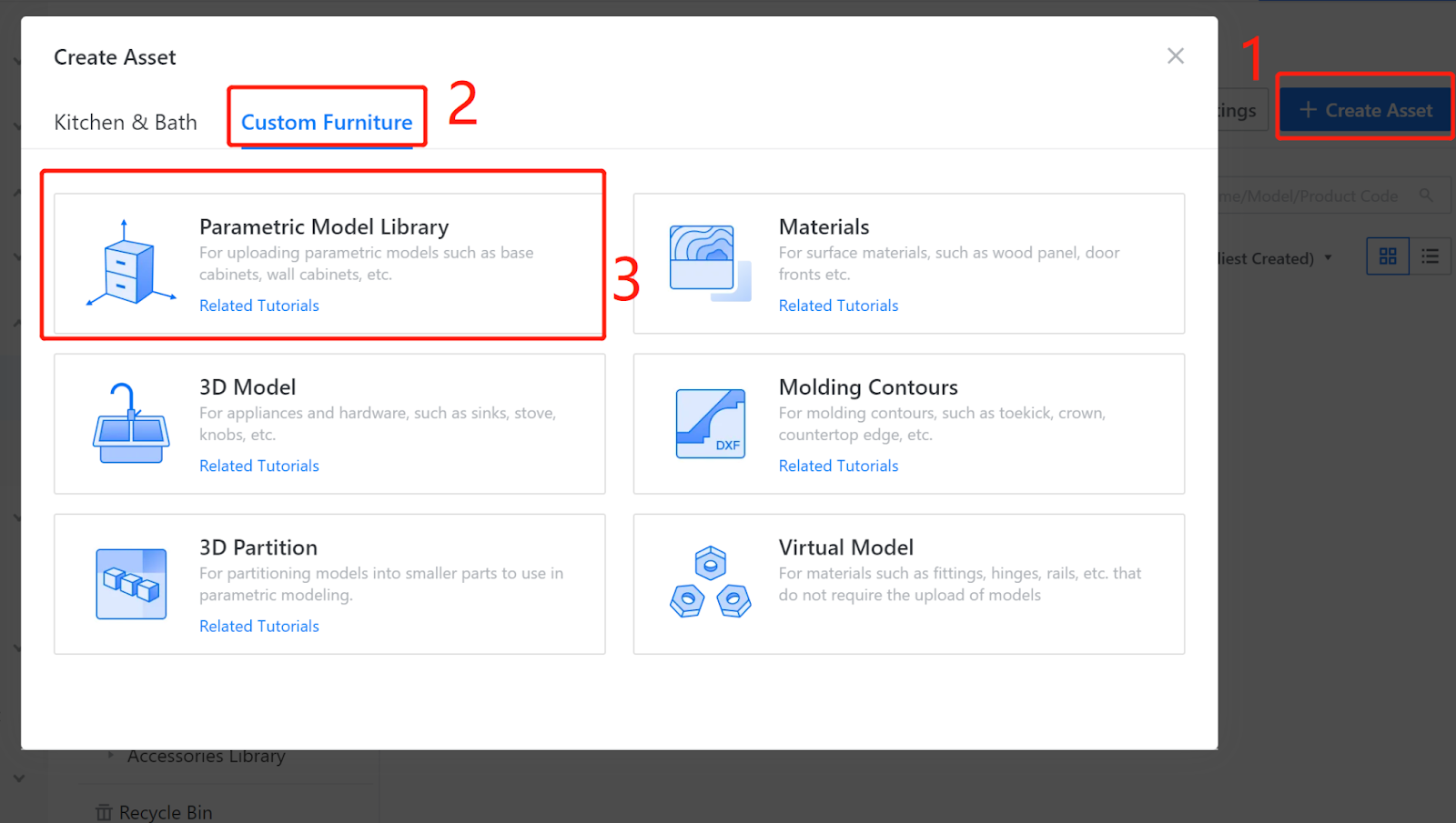 Custom Furniture —Create Asset—Parametric Model Library— New—