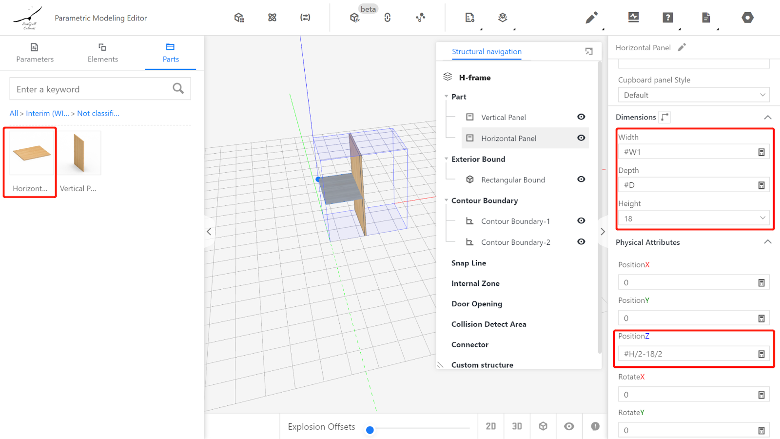 Position X: 0 Position Y: 0 Position Z: #H/2-18/2 (centered vertically).
