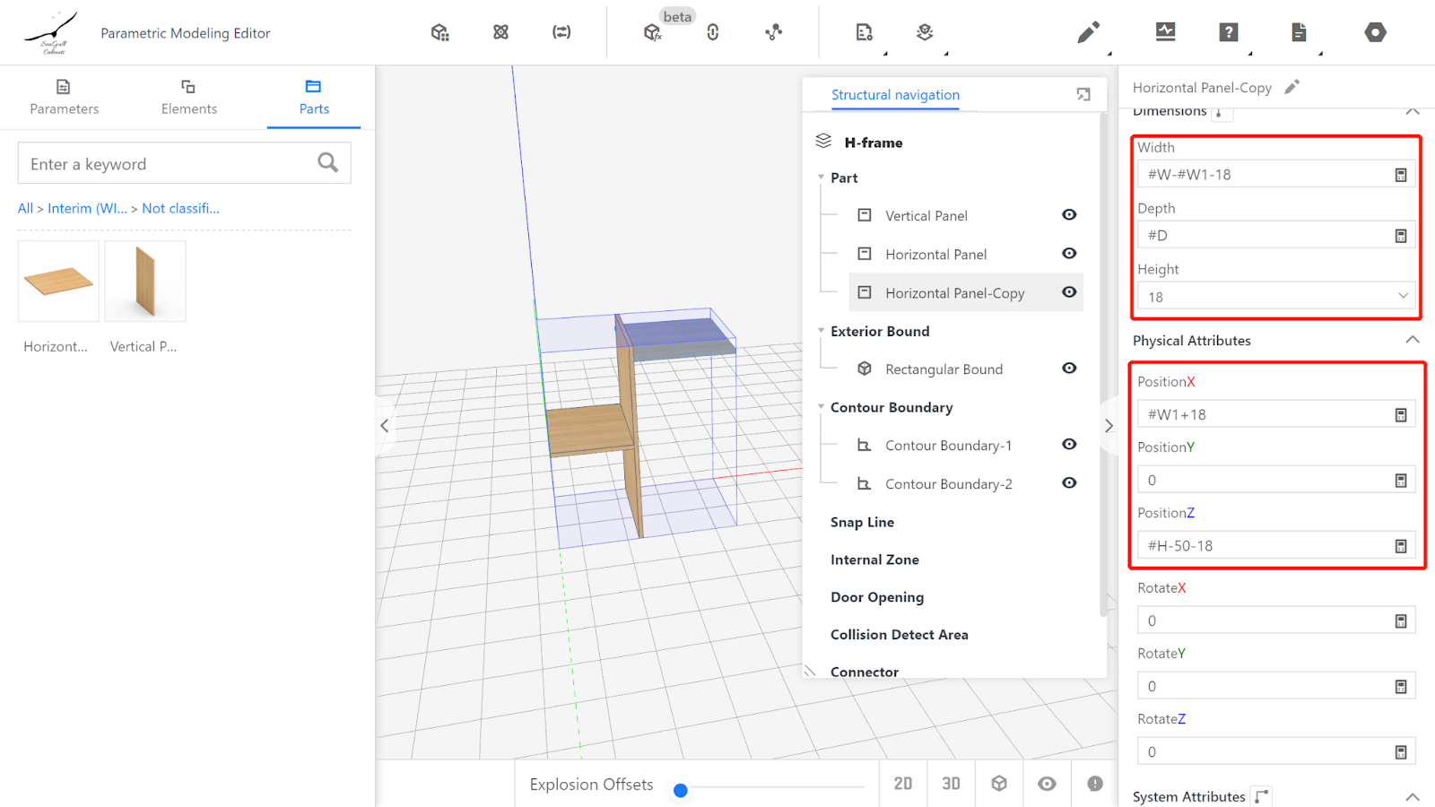 Position X: #W1+18 Position Y: 0 Position Z: #H-50-18
