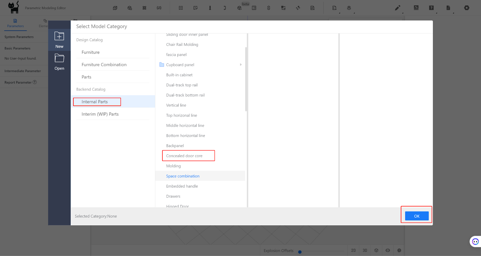 Note: The modeling process for the glass panel core for whole-house custom furniture is identical to that of sliding doors, with the only difference being the category.