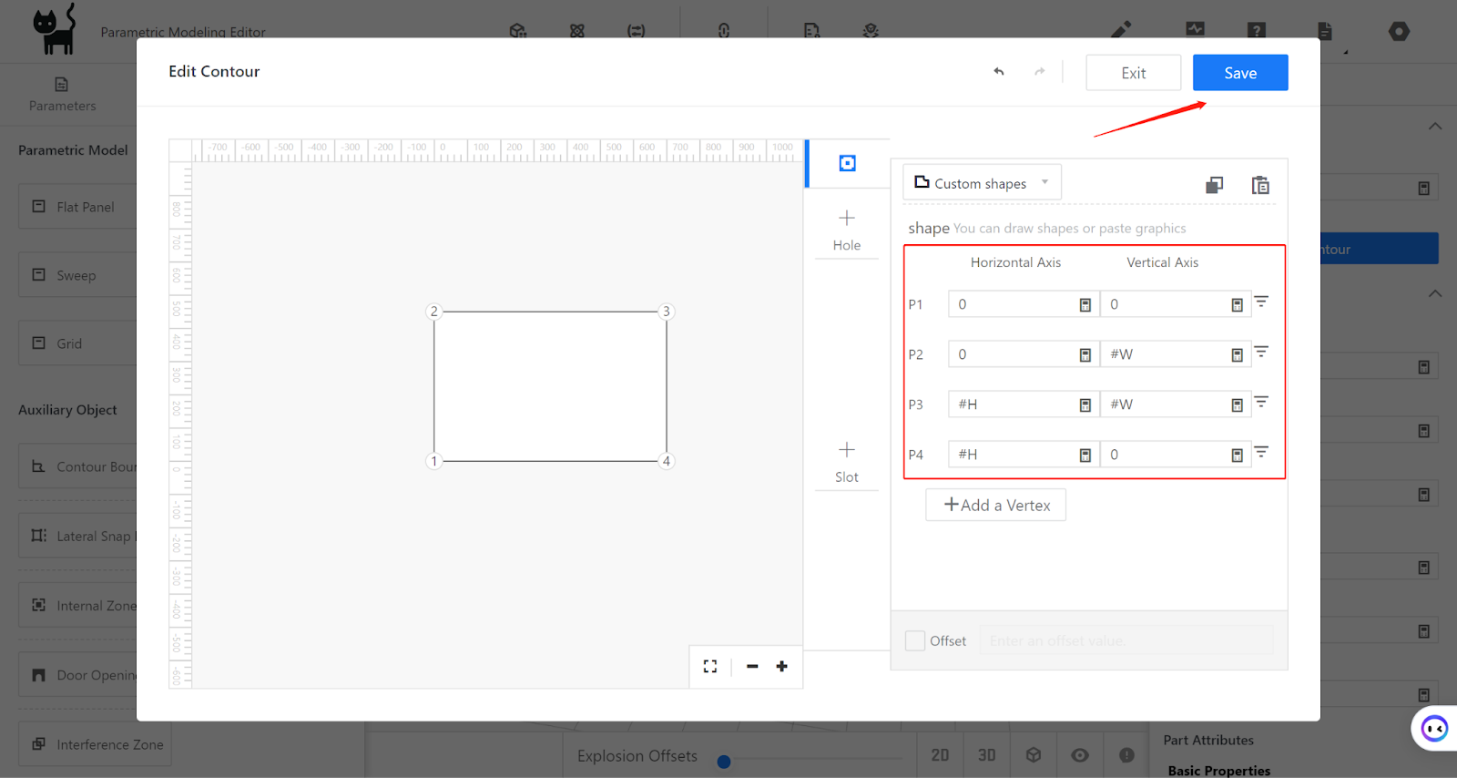① Point 1 (0,0); Point 2 (0,#W); Point 3 (#H,#W); Point 4 (#H,0);