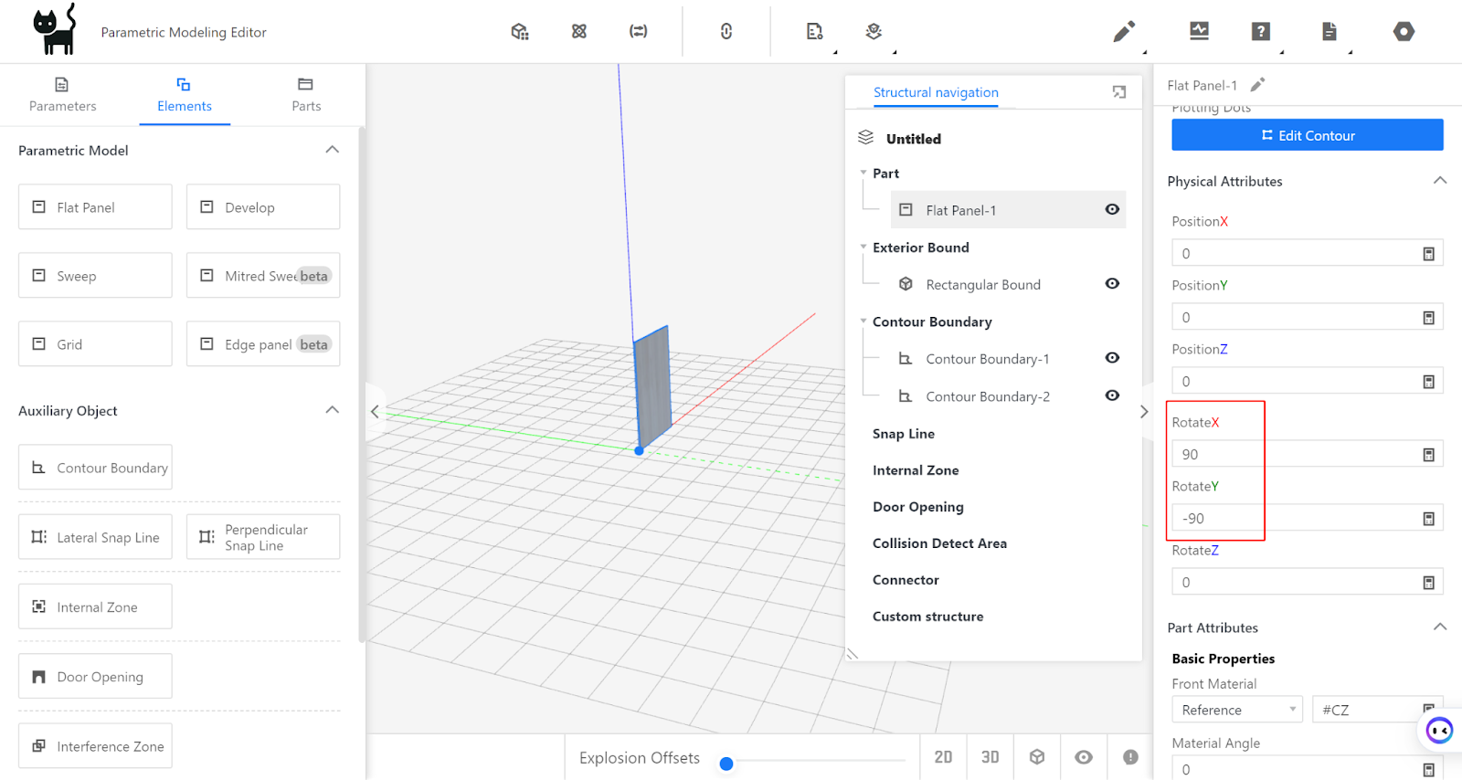 ② Physical Properties: Rotation X: 90; Rotation Y: -90; Rotation Z: 0;