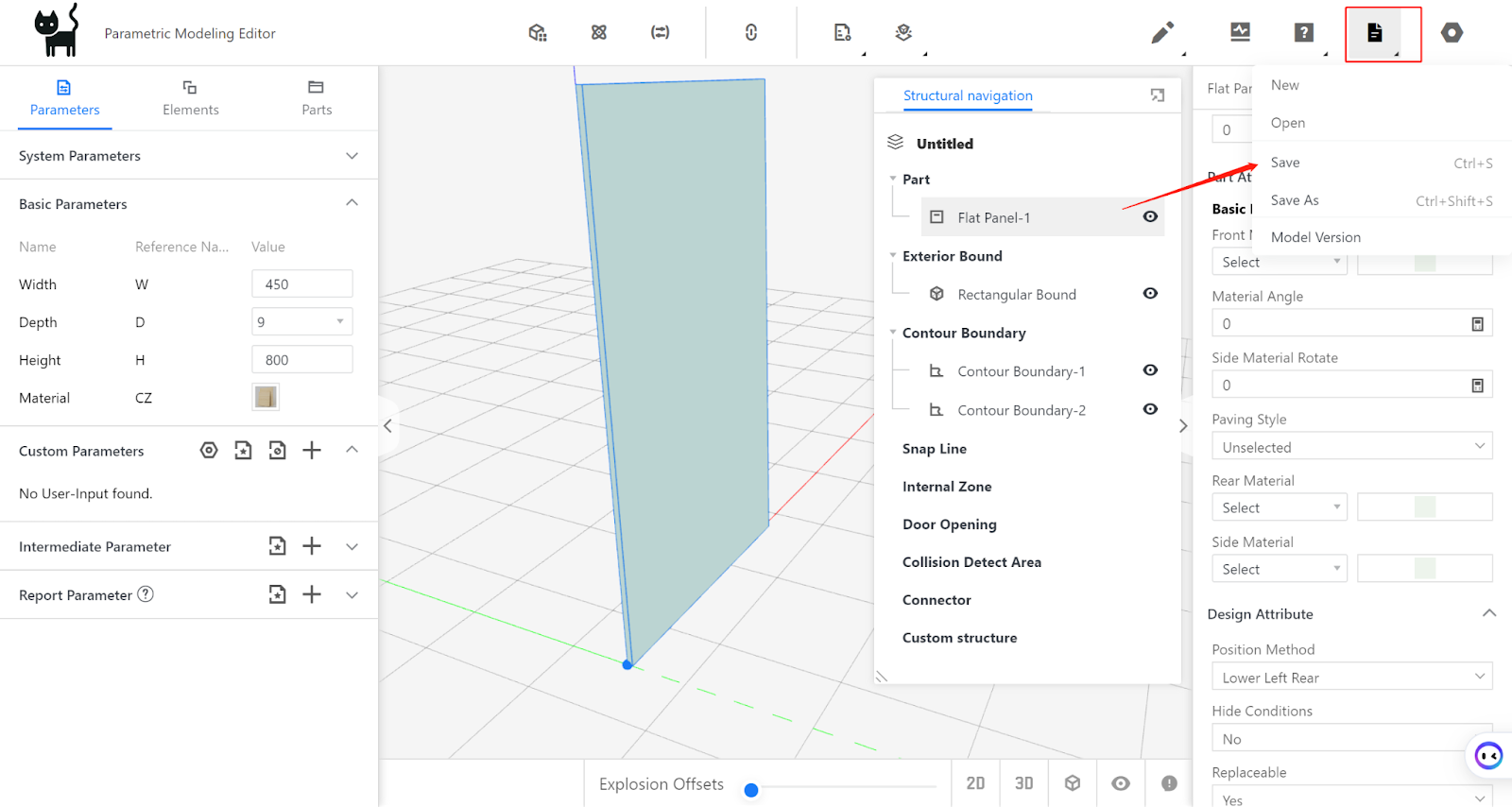Once everything is confirmed, click on the file selection in the top right corner, choose save, select the sub-directory for saving, name it, and click save.