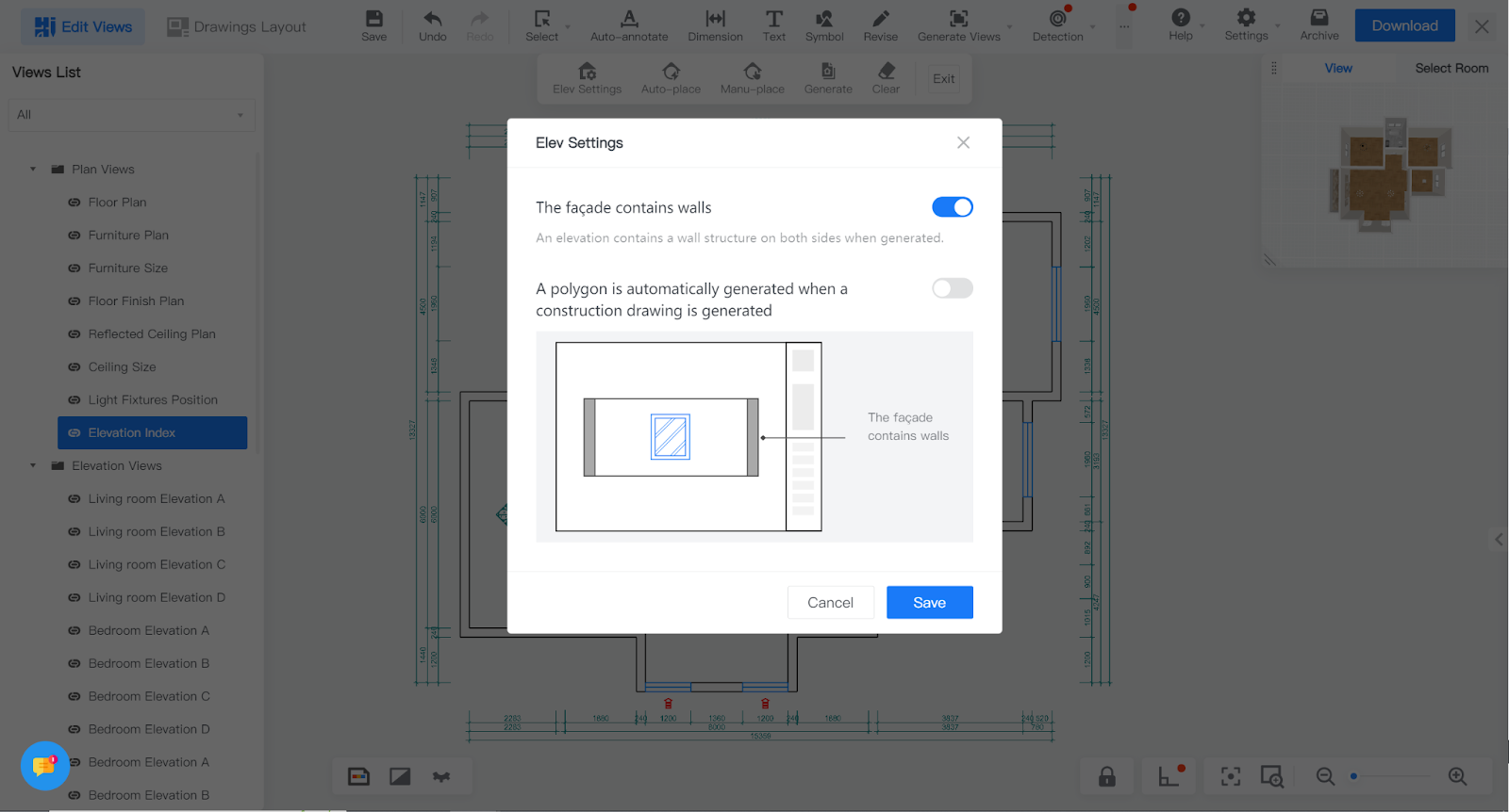 3.Excessive elevation views can also lead to lag. You can remove unnecessary elevation views and disable the automatic elevation function.