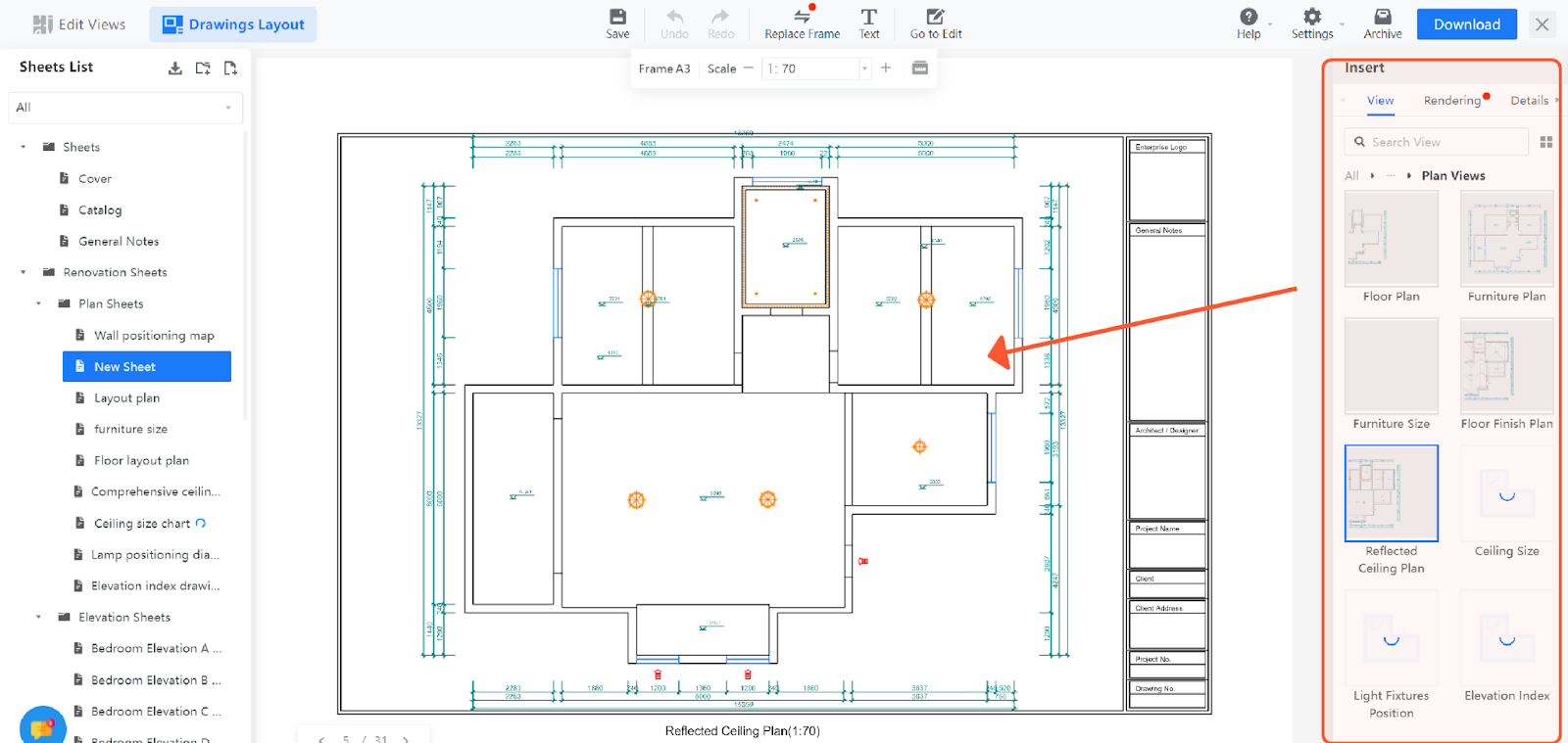 On the construction drawing page, you may not find the required drawings such as elevations, custom, hard furnishings, plumbing and electrical, colour images, etc. Or perhaps you wish to manually create drawings. You can easily solve this using the methods provided in this document.