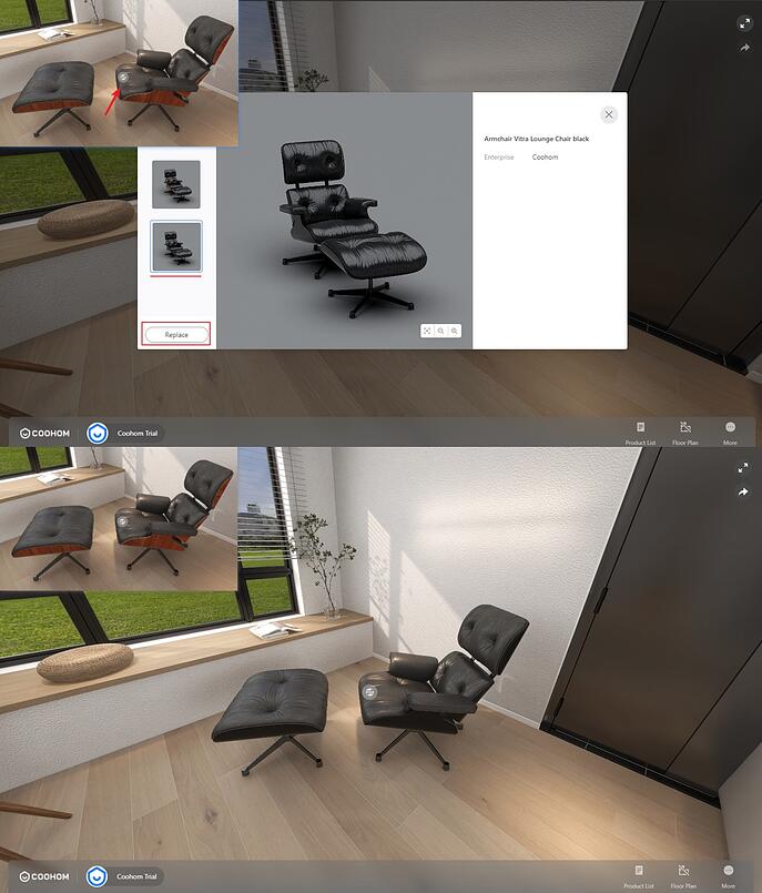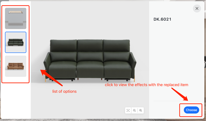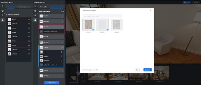 Product Replacement is a saleable add-on that allows users to set multiple replaceable items for viewing within the Panorama/3D Tour functions.