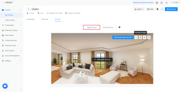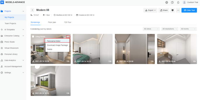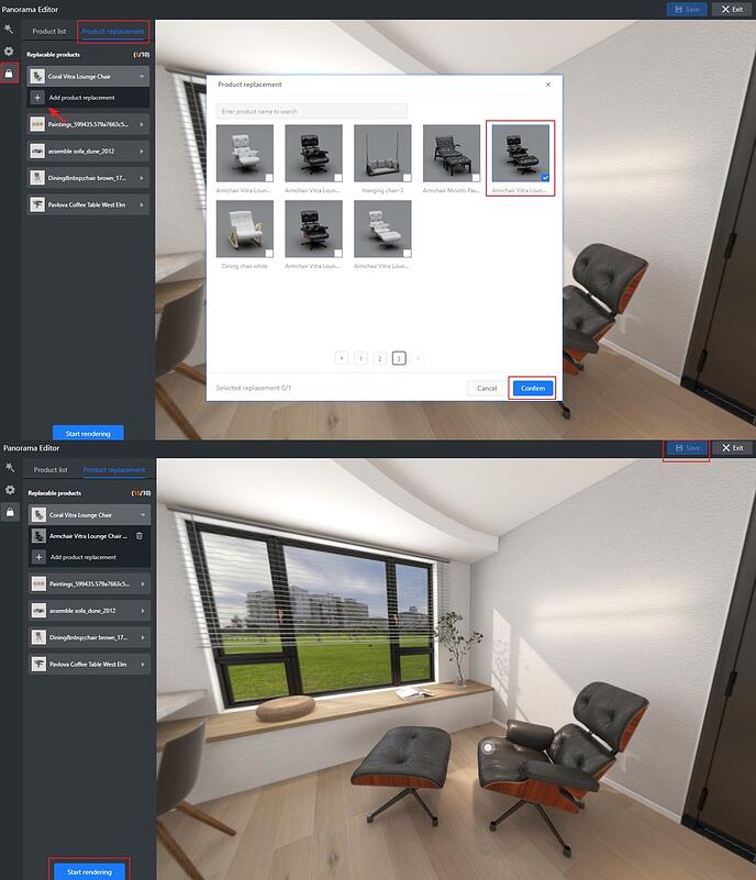 Rendered Panorama must have the product from the enterprise accounts (models or construction textures)