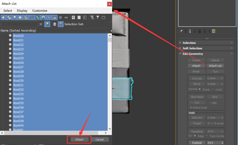 Ctrl + A to select all and click Attach in the pop-up Attach List.