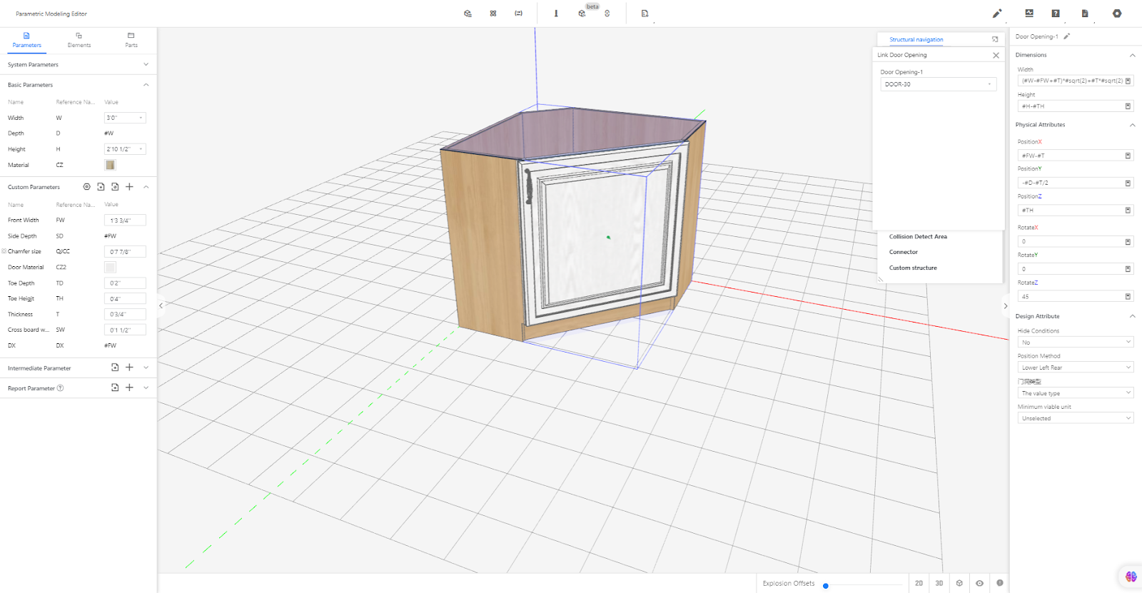 The door frame is a 2D that determines the size, position, and rotation of the door. By setting up the door frame through the editor, designers can place the door at the location of the door frame during the design process.