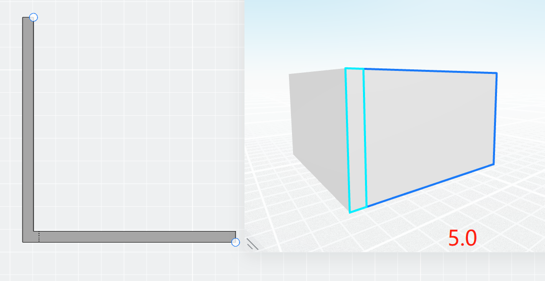 As shown in the figure, 4.0 and 5.0 have different ways of wall connection in 2D interface and wall editing in 3D interface.