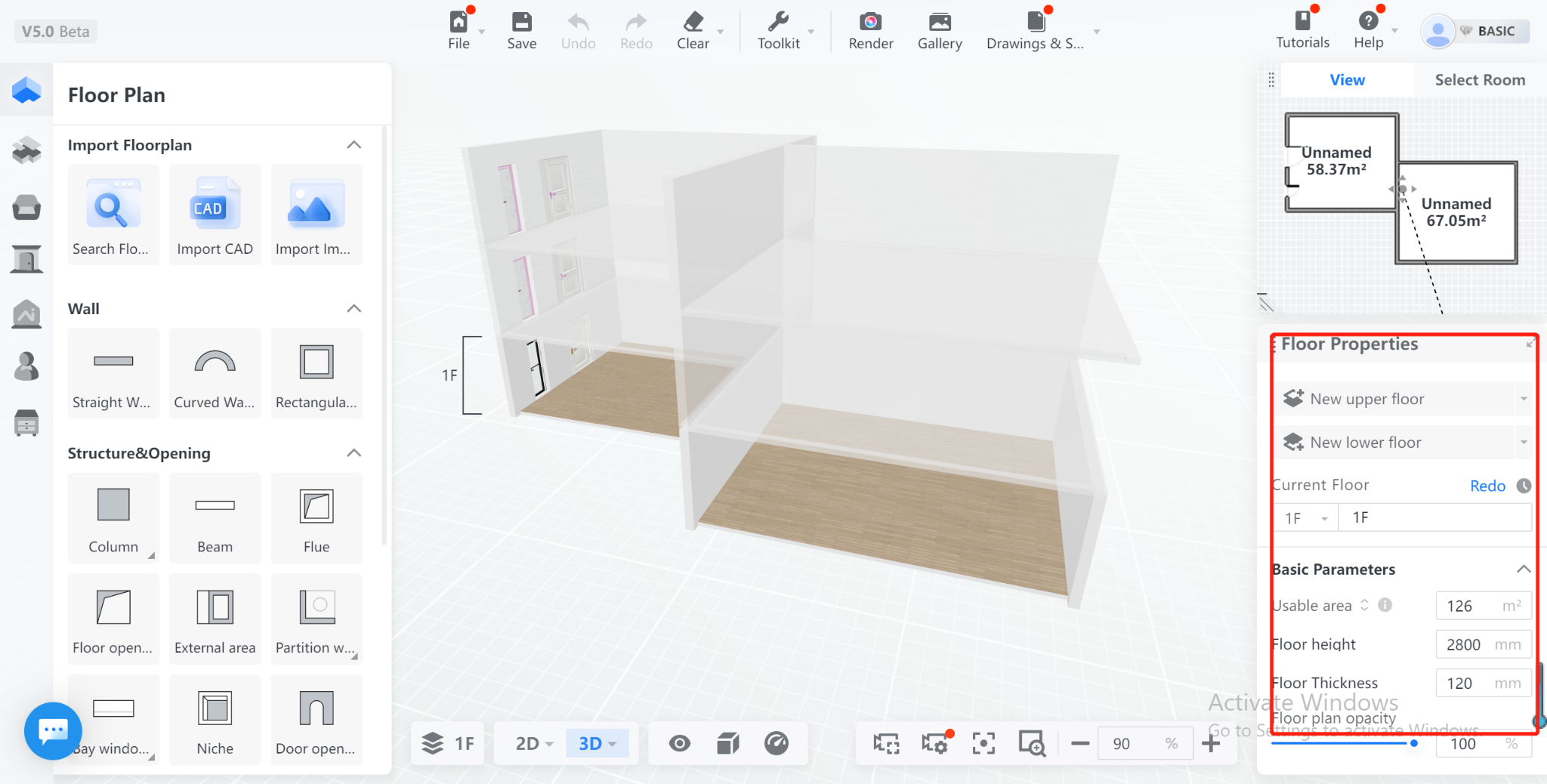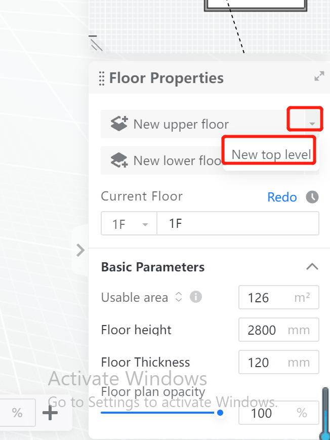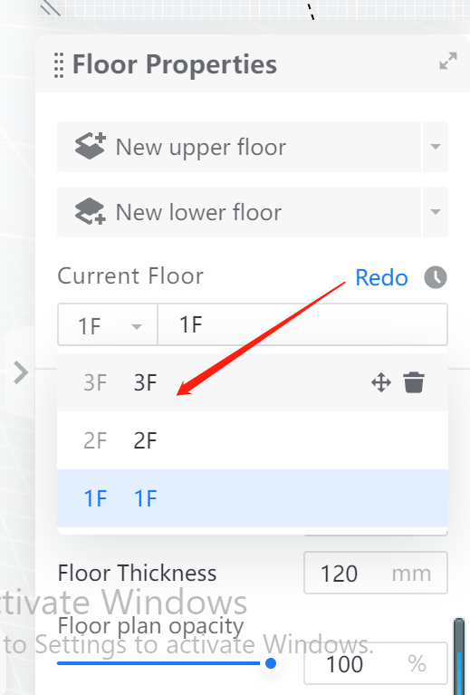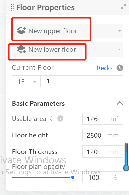 Floor Thickness: Set the floor thickness of the current floor, and each floor can have a different thickness value.