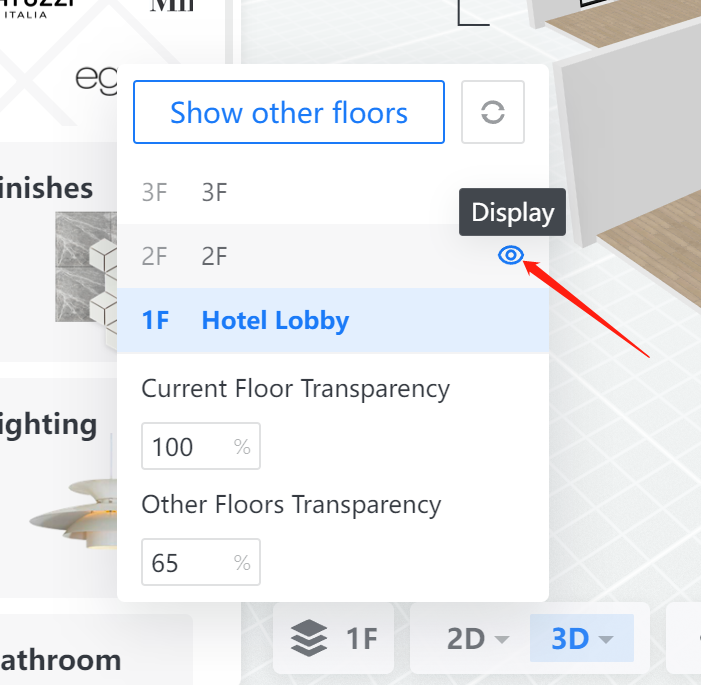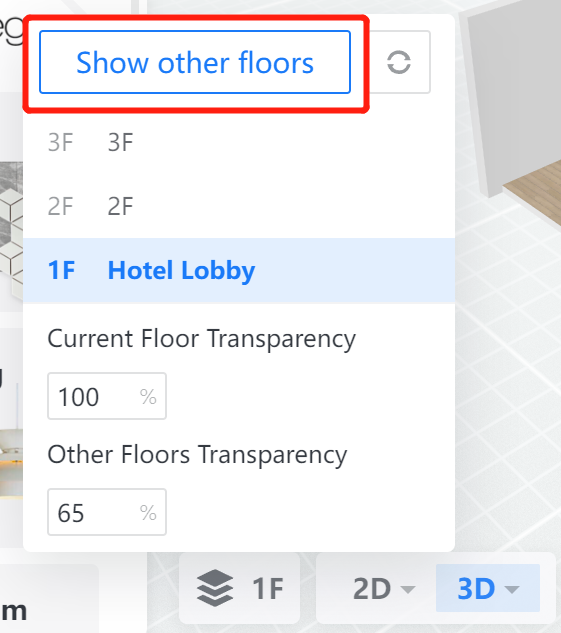 Show or hide individual or all floors. Other floors except the current floor can only be previewed and cannot be edited.