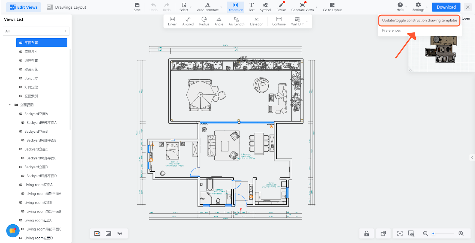 First, confirm that you have placed models. If so, it may be because the scheme was created earlier. You need to click the "Synchronize System Configuration" button (some vendors may have "Update/Switch Construction Drawing Template" instead) in the "Settings" module at the top right corner of the construction drawing page to update. If you have placed legends, please refer to question six: "I placed legends in 'Layout', but they are not displayed in 'Construction Drawing'. What should I do?"