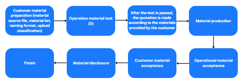 After users upload materials to the merchant backend, the operations team will handle the library setup.If users require assistance uploading materials to the merchant backend, please refer to the Upload Assistance Process above.