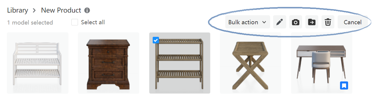 1. Select Enterprise Library >Products> 3D Models / Finishes in the left panel.