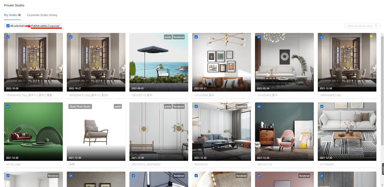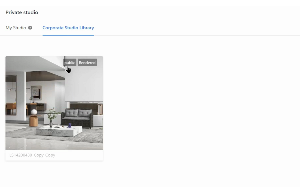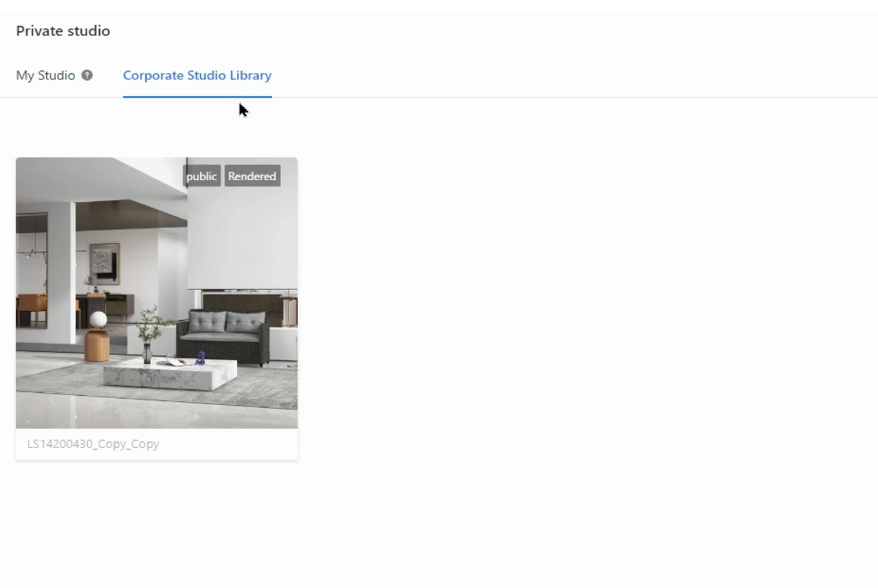 5. Then, the studio that you selected is published to the Corporate Studio Library. You can click the Corporate Studio Library tab to view your published studio.