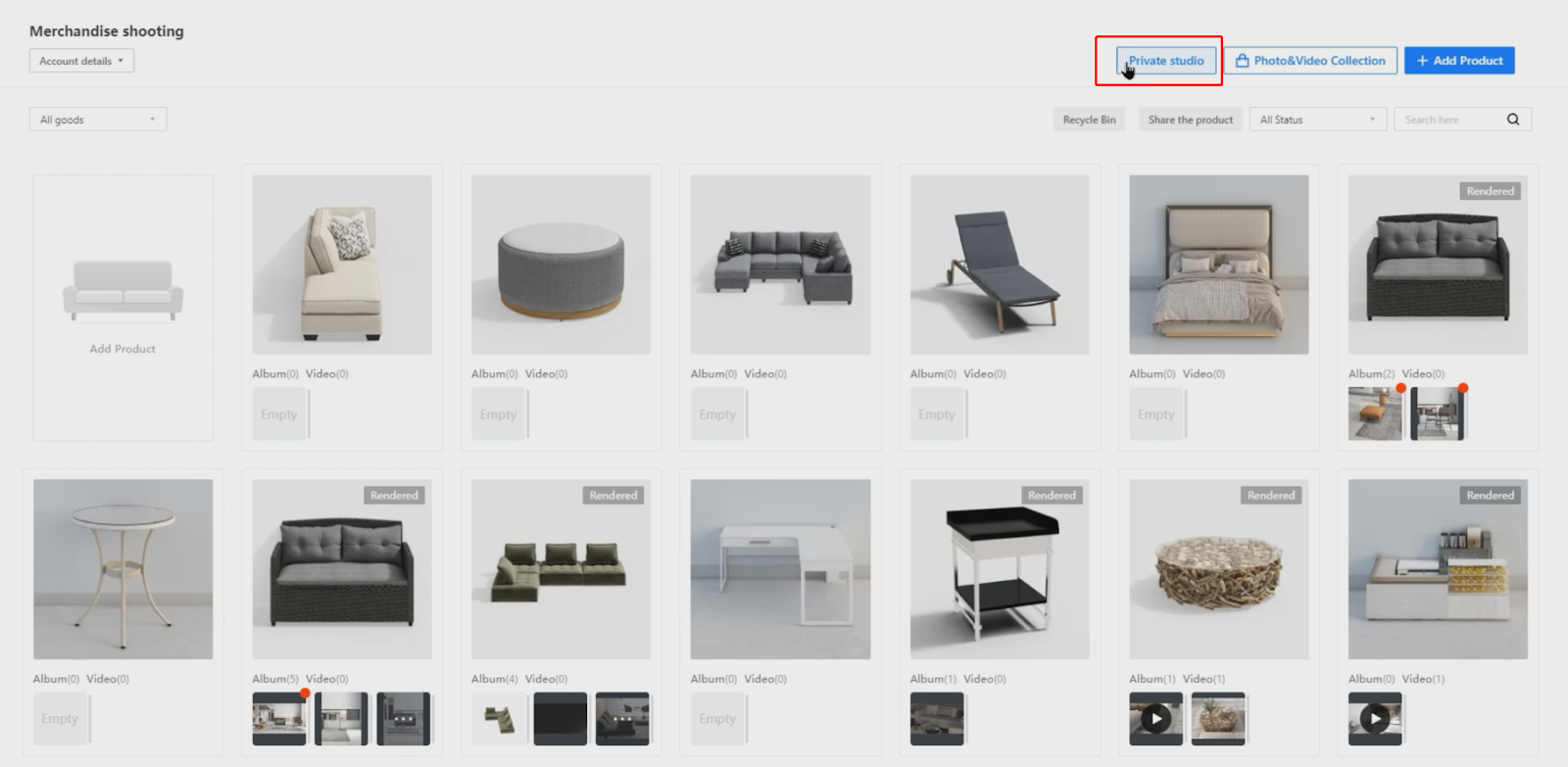 2. In the Merchandise Shoot page that appears, click the Private Studio button.