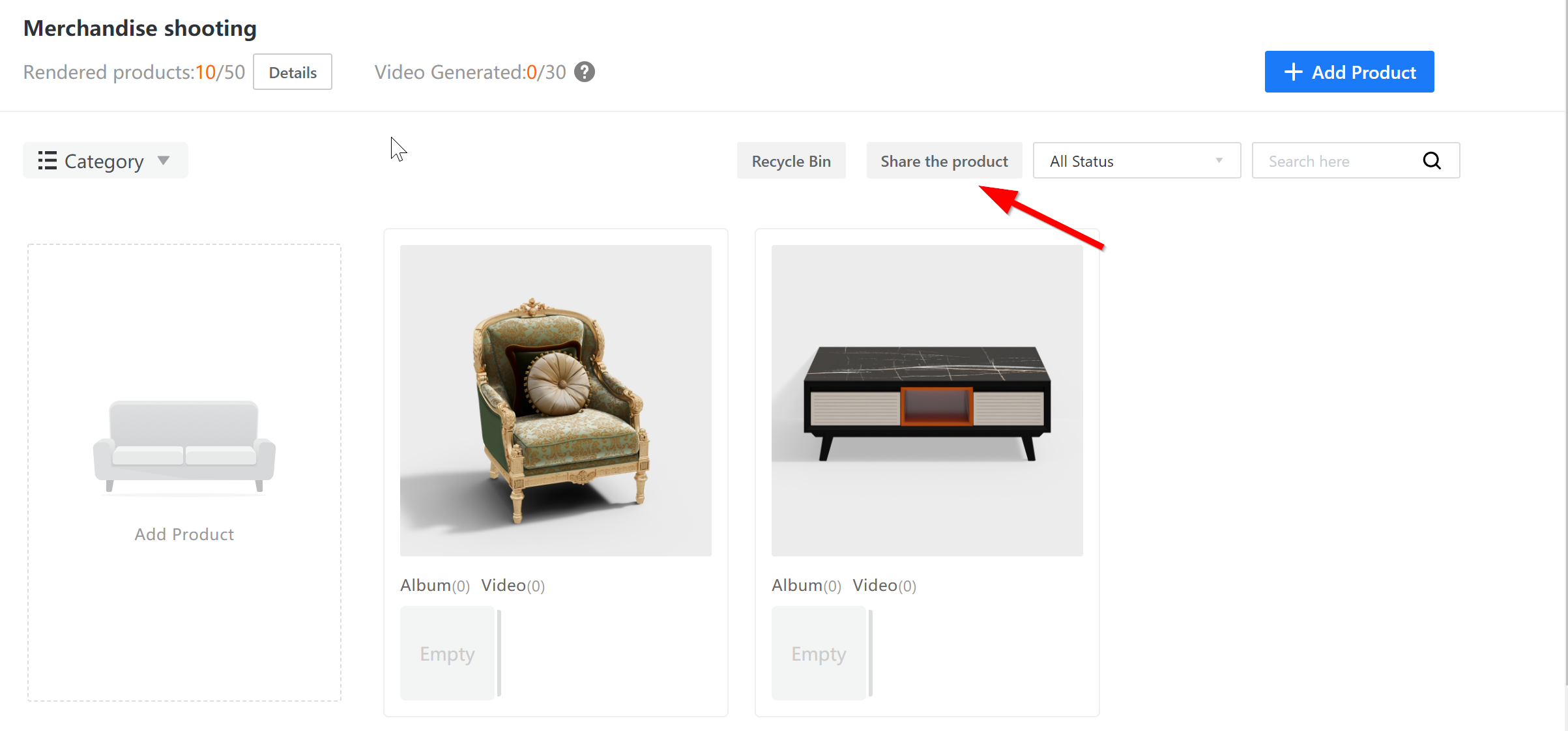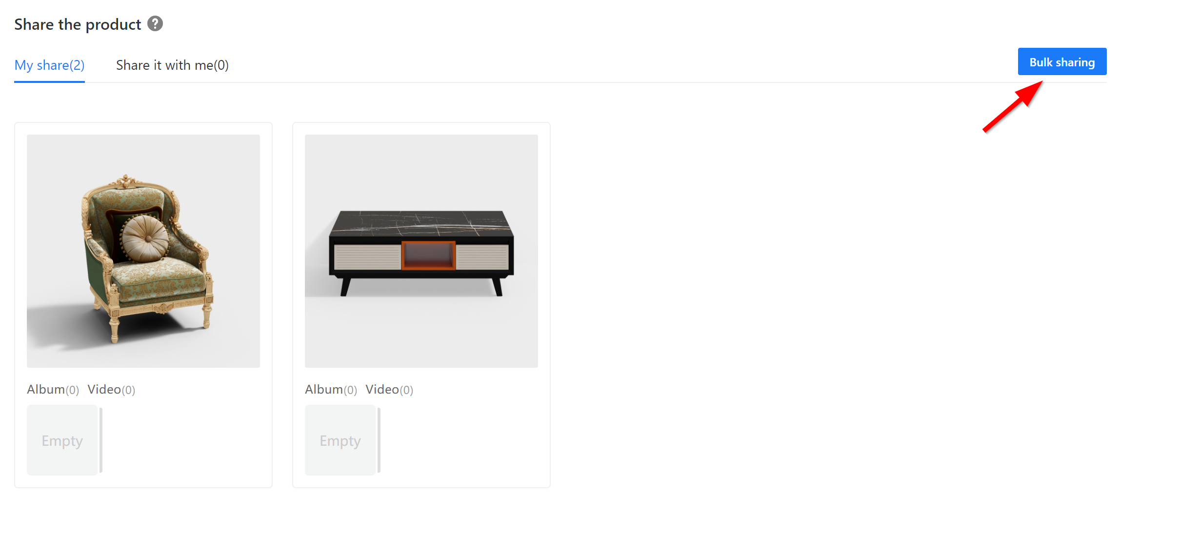 4. If to share the products by bulk, add the necessary products first. Then click on Share the product.